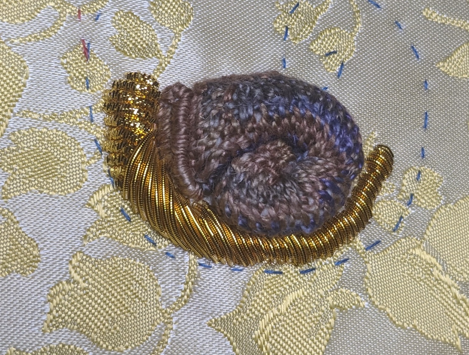 And I also made this tiny "Casket toy" glove of flt ribbons and gold passing thread